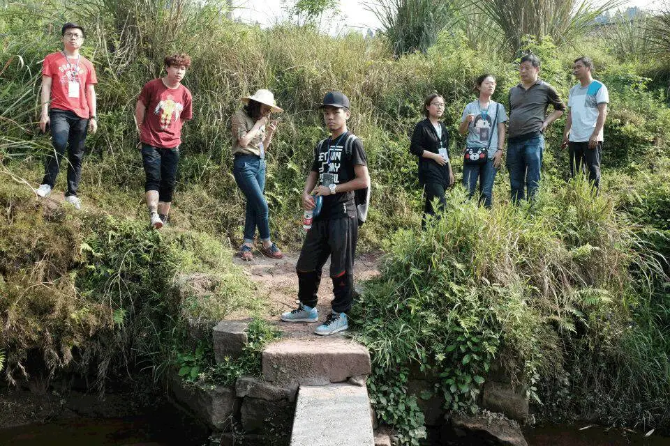 在村民家中,曾经自己出资修建预制板桥的爷爷讲述了河流的更多情况。村支书为了让大家更了解桥点情况,带大家徒步行走几公里,到河流的上游下游分别查勘,整条河的信息渐渐清晰明朗。第一个下午,同学们通过分工合作,逐渐熟悉了整个调研的过程与方法。
